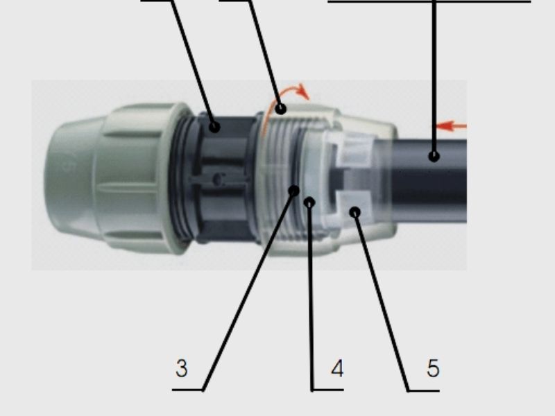 - Siết chặt: Đẩy vòng đệm cao su và vòng kẹp sát vào thân khớp nối. Dùng tay vặn chặt đai ốc hết mức có thể.