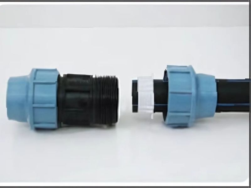 - Phía ống HDPE: Cần một “Đầu nối ren ngoài HDPE” (loại siết răng, tương tự măng sông nối nhanh nhưng một đầu là ren).