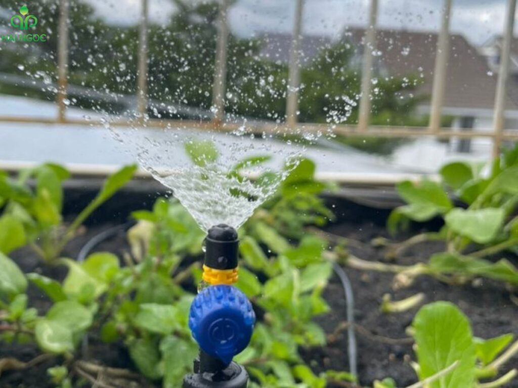 - Điều chỉnh béc phun: Thỉnh thoảng kiểm tra các béc phun xem có bị lệch hướng hoặc bị cản trở không, điều chỉnh lại để đảm bảo tưới đều.